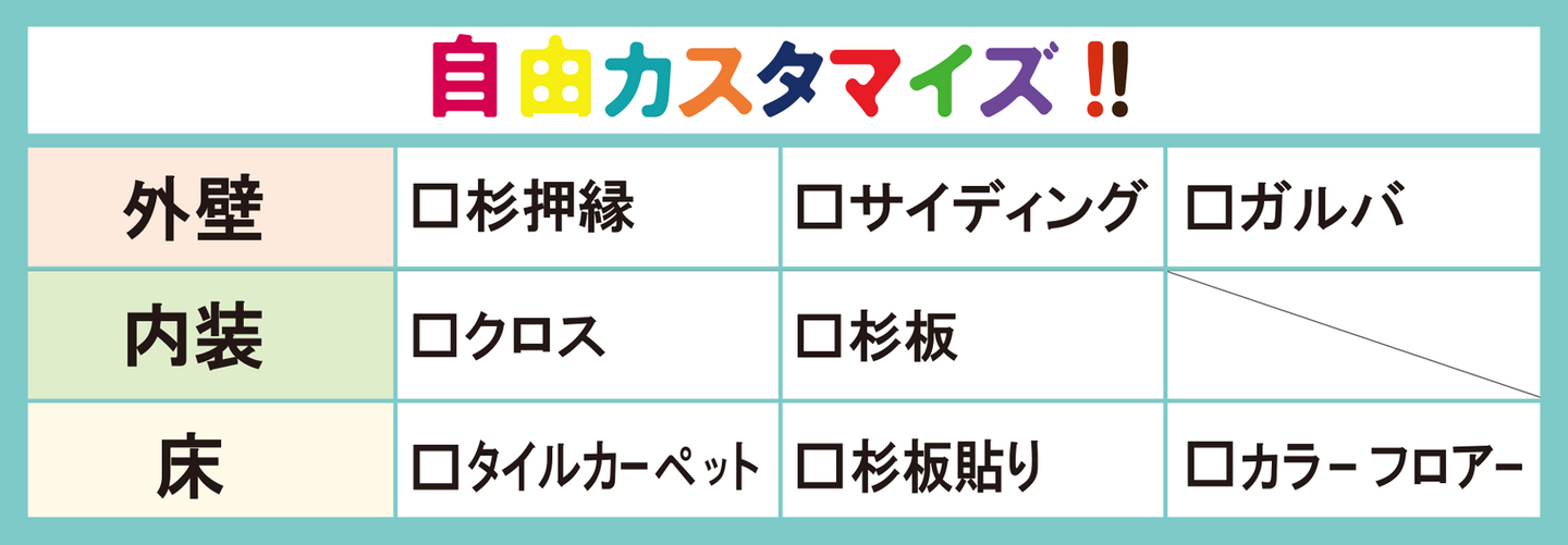 ※ドア、窓、断熱材、外壁などのグレードアップも可能です。